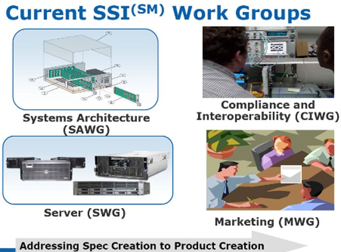 Server System Infrastructure (SSI) is a set of specifications created to define commonly used server components. The SSI community develops specifications that standardise the critical server elements as well as interfaces between the elements such as boards, chassis and power supplies. This helps in developing common server hardware, which in turn simplifies the building of server solutions.